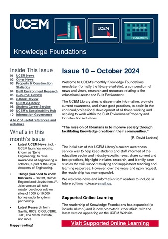 Knowledge Foundations publication (formerly the UCEM e-library e-bulletin) is a compendium of news, views, research, and resources related to the educational sector and the built environment.