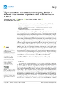 Rana, Muhammad Qasim, Lee, Angela, Bezerra, J.F.R and Boas, G.H.V. (2024) Empowerment and Sustainability: Investigating Barriers to Women’s Transition from Higher Education to Empowerment in Brazil. Societies, 13. ISSN 2075-4698
