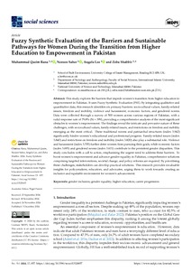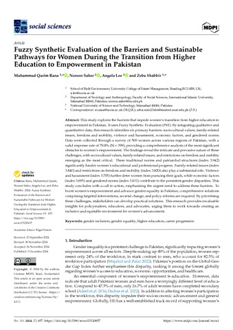 Rana, Muhammad Qasim, Saher, N., Lee, Angela and Shabbir, Z. (2024) Fuzzy Synthetic Evaluation of the Barriers and Sustainable Pathways for Women During the Transition from Higher Education to Empowerment in Pakistan. Social Sciences, 13. p. 657. ISSN ISSN: 2076-0760