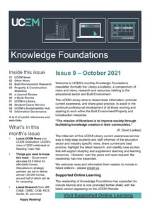 Knowledge Foundations publication (formally the UCEM e-library e-bulletin) is a compendium of news, views, research and resources relating to the educational sector and the built environment.