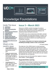 Knowledge Foundations publication (formally the UCEM e-library e-bulletin) is a compendium of news, views, research and resources relating to the educational sector and the built environment.