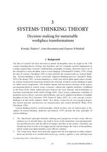 Renuka, Thakore, Aino, Kavantera and Whitehall, Graeme (2021) Systems-Thinking theory: Decision making for sustainable workplace transformations. In: ) A Handbook of Management Theories for Office Environments and Services Transdisciplinary Workplace theories. Abingdon: Routledge. ISBN 9781003128786